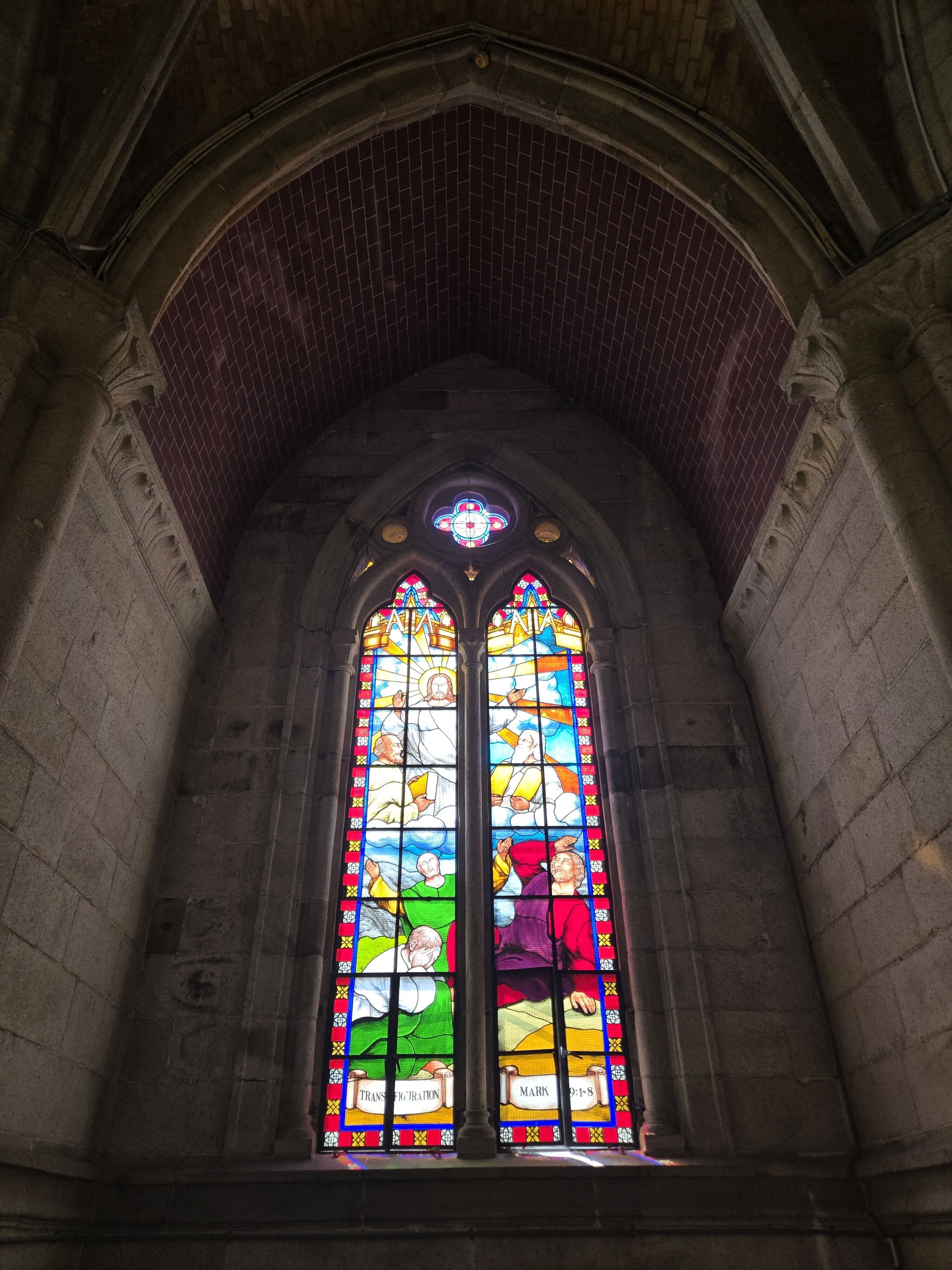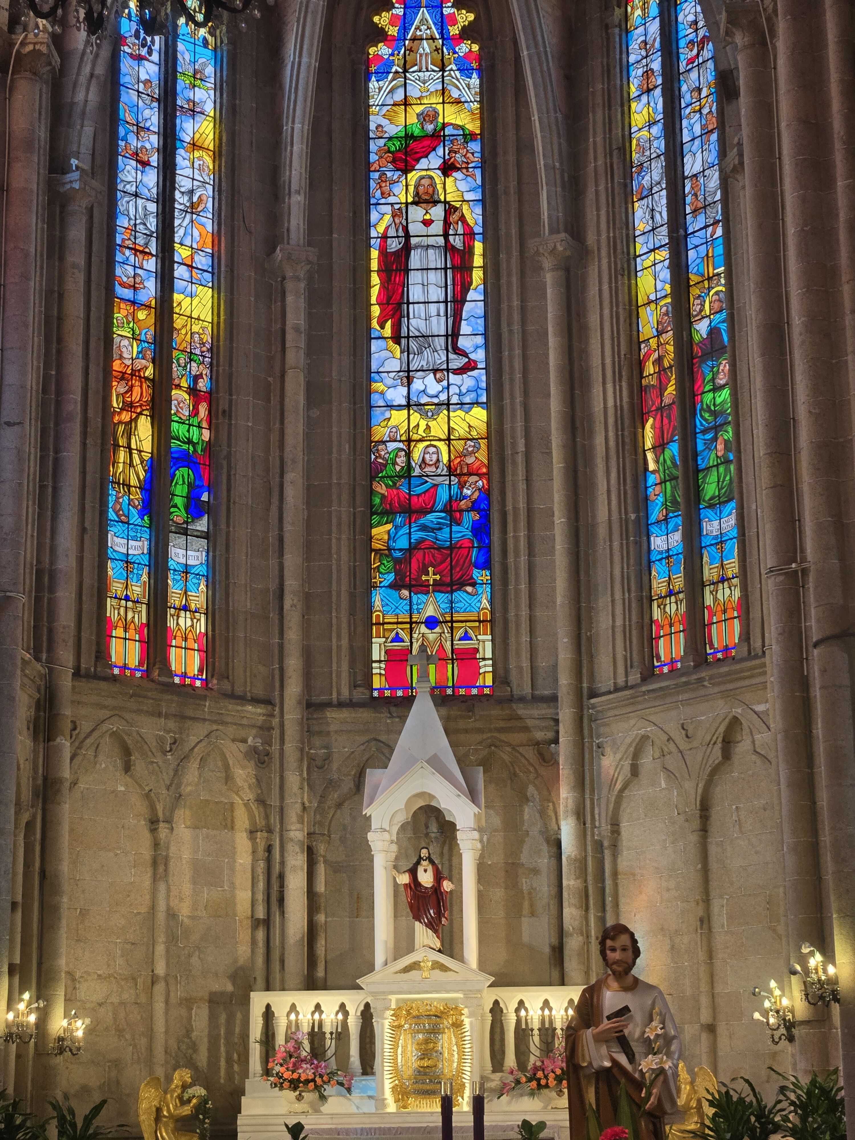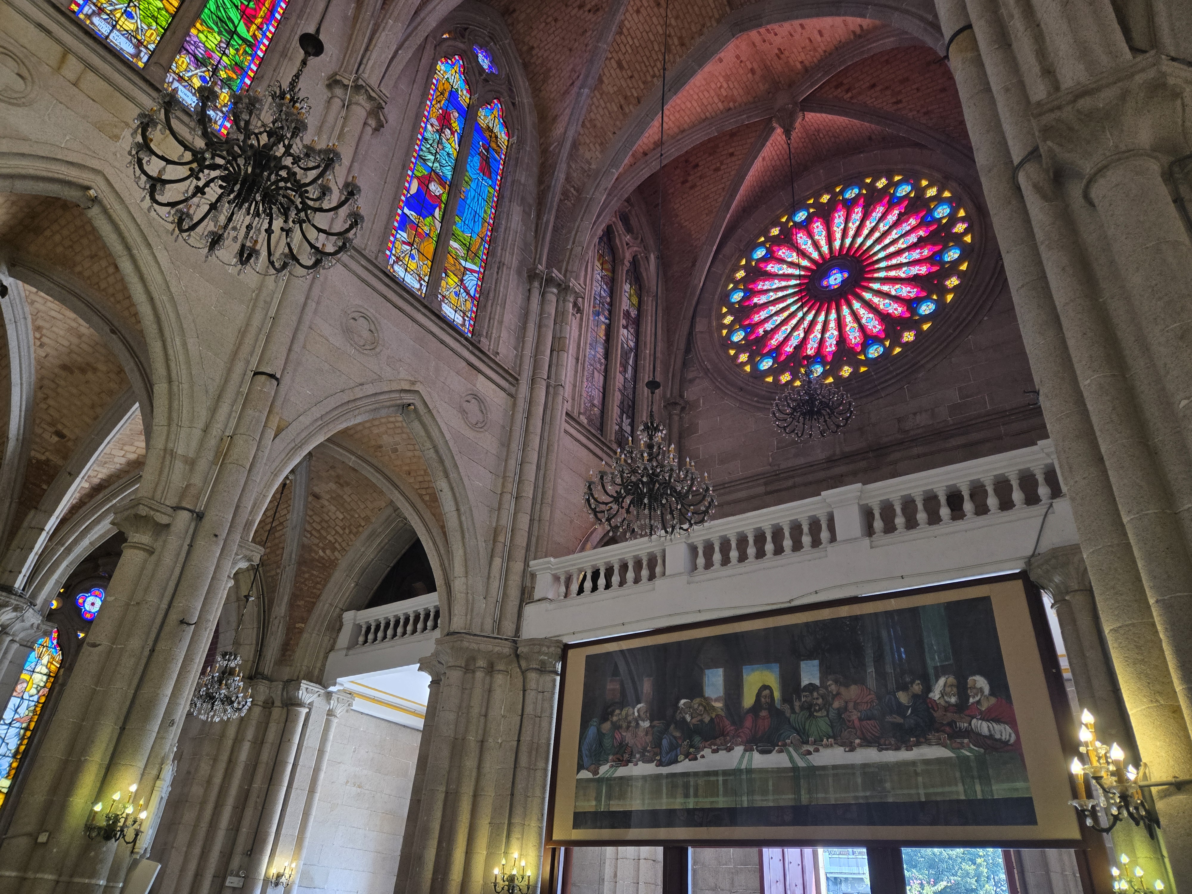 后续通过侧门进入教堂,第一感觉就是平静。虽然人很多,但持续播放的宗教音乐(离开后搜索,应该是《露德圣母歌》)仿佛有神奇的魔力,暂时荡平了心中的烦躁。第二感觉就是绚丽。从铁门处看教堂整体,可能是摩登大楼看得多了,感觉还是有些偏小的。但进去后,挑高的穹顶以及阳光打过彩窗的惊艳,让我收起了刚升起的一咩咩轻视,并小小的感到有些罪恶。