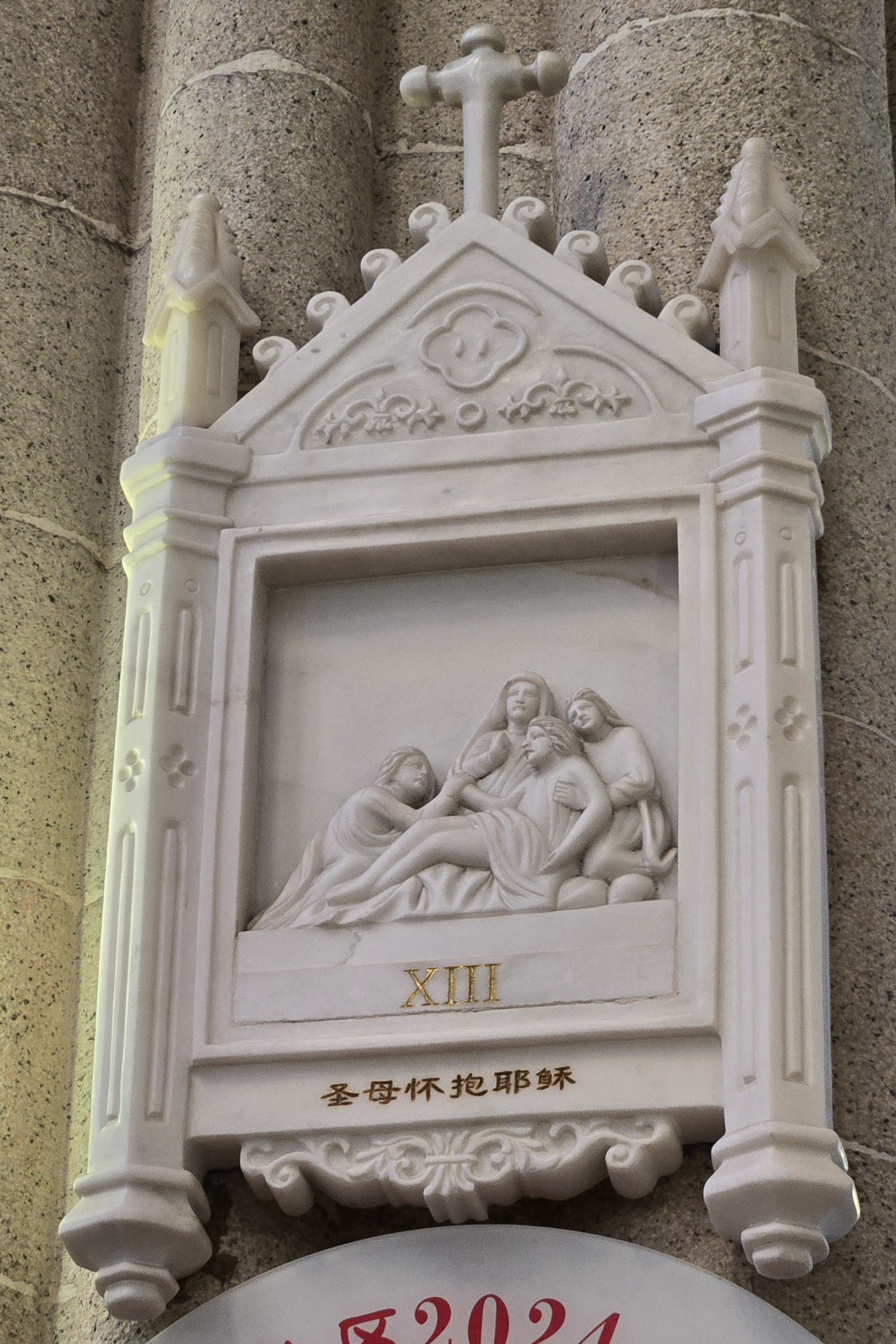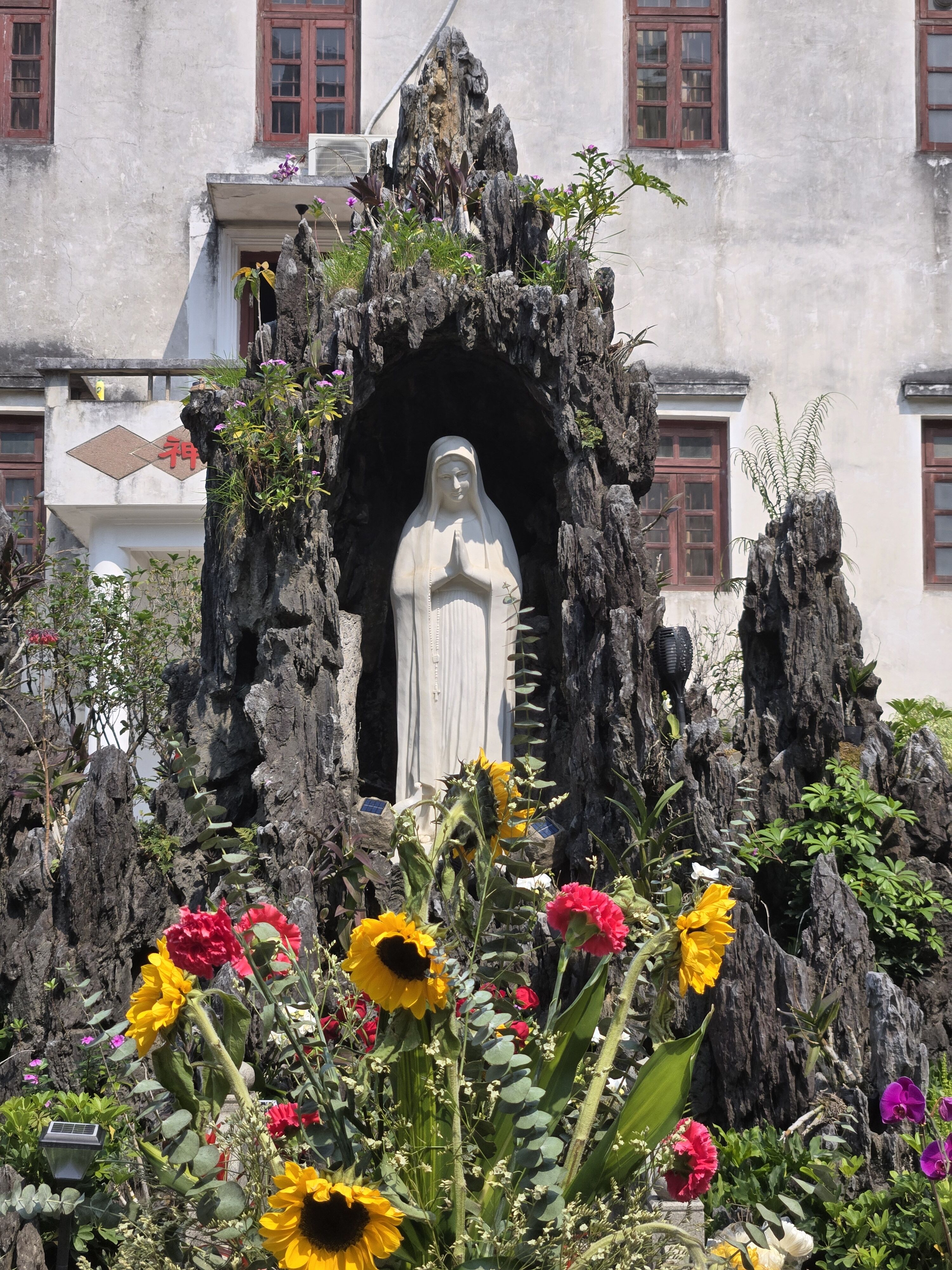 出来后,围绕着大教堂走了一圈,更感厚重(不过有个石像旁,密密麻麻列着宗教管理办法,有一点点坏气氛)。侧方还有一个明显多人(供奉/参拜/敬礼…?,不太了解在天主教中应用什么词语精确描述…)的石像,鲜花环绕,我猜应是圣母玛利亚。